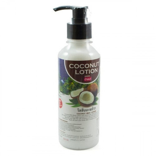 Лосьон для тела с экстрактом кокоса Banna снижает сухость кожи, благотворно влияет на её состояние после длительного пребывания на солнце. Минеральные и витаминные комплексы, входящие в состав этого лосьона, обладают хорошим антиоксидантным действием и уменьшают количество морщин на коже, а также значительно усиливают тонус кожи и устраняют её провисание. Лосьон прекрасно впитывается и не оставляет жирных следов. Подходит для любого типа кожи. Используется при процедурах приёма солнечных ванн и после них, применяют лосьон и после депиляции для уменьшения раздражения кожи. Кокосовый лосьон для тела с приятным тропическим ароматом кокоса с натуральным кокосовым маслом, содержащим коллаген, витаминамы А и Е, фруктовые кислотв - это идеальный уход для любого типа кожи. Кокосовый лосьон идеально восстанавливает и сохраняет естественную влагу вашей кожи. Смягчает, увлажняет, питает, разглаживает, защищает кожу от вредных факторов окружающей среды. Кокосовый лосьон для тела эффективен при сухости и шелушении кожи, также можно использовать как средство после загара. Он хорошо успокаивает и питает кожу после депиляции. Кокосовый лосьон очень густой и экономичный в использовании, наносить небольшое количество крема на чистую сухую кожу после душа.